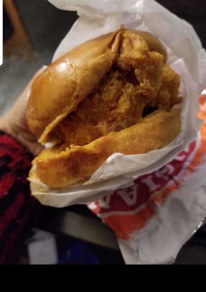 Me: (Yes! Perfect timing) Okay, let’s talk about this Popeye’s Chicken Sandwich.